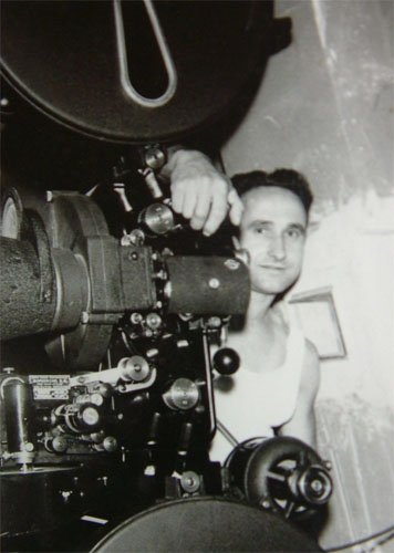 Pero volvamos a nuestro Territorio Imagen. Desde esas fechas podemos contemplar en el vestíbulo de la Casa de Cultura el antiguo proyector del Cine Alexander así como otras piezas del equipo existente en la cabina de proyección. Hace unos meses fueron cedido por la familia Portolés-Azcón al Ayuntamiento y ahora han sido montadas y limpiadas por Juan José Blasco quien durante más de treinta años se encargó de hacer funcionar la “linterna mágica” del cine. Se le puede ver en una foto ejerciendo de operador. No faltó quien exclamó aquello de ¡cuántos recuerdos!.
