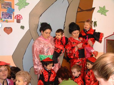 Cabe destacar los disfraces de los niños de la guardería, que este año nos sorprendieron con unos originales disfraces de chinos, acompañados por sus dos profesoras Lola y Rosana que estaban guapísimas.