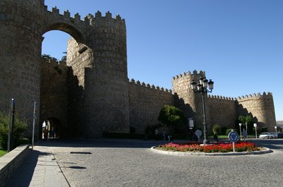 Avila, situada en la cima de una colina a 1150 m. de altitud sobre el nivel del mar lo que la convierte en la capital de provincia más alta de España, reunía unas condiciones estratégicas idóneas para la defensa del territorio durante la época de la Reconquista; de ahí la necesidad de consolidar su seguridad mediante unas murallas que la protegieran de los embates de los ejércitos musulmanes. La Muralla, fue mandada construir por Raimundo de Borgoña, por orden de su suegro Alfonso VI de Castilla. Su perímetro es de 2.500 metros y su estado de conservación perfecto. Sin embargo, a pesar de que durante el siglo XIII los intentos de conquista por los reyes musulmanes fueron constantes, dentro de la ciudad, la convivencia con los moros, fue perfecta, como lo prueba los numerosos restos mudéjares, que todavía se conservan. Volviendo a la Muralla, señalaremos los 90 torreones con que cuenta, siendo su altura media de 2,5 metros y su espesor de 3 aproximadamente. Su acceso a la ciudad, puede hacerse a través de las 9 puertas de que dispone, si bien entre todas ellas, destacan la de San Vicente y la del Alcázar.