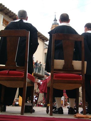 Nuestra recreación aporta variaciones respecto a las anteriores, motivadas por el cambio de época. Estamos en pleno barroco dieciochesco, la indumentaria del pueblo se mantiene pero la nobleza viste a la moda de Versalles: pantalón estrecho hasta la rodilla, levita, grandes pelucas y sombrero de tres picos. El protocolo de la toma de posesión ha cambiado: la horca es sustituida por la espada y las necesidades de los masinos son otras. Aquí tenemos una gran novedad, otro pleito se va a dar a conocer en esta representación: El pleito de la seda. La seda, el gran sustento de la población del municipio en este tiempo, va a ser sometida al impuesto de la décima. El pueblo muestra su discrepancia, y ahora las mujeres, grandes valedoras de este oficio, protagonizarán la protesta ante el poderoso comendador. Todo lo veremos el próximo 27 de septiembre. Los actores se están volcando para asumir con éxito las novedades. Emoción pues para esta nueva edición.