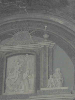 La lechuza («Tyto Alba») es una rapaz nocturna que rara vez se ve a la luz del día. Cuando lo hace, suele ser porque el alimento escasea. Por su sagacidad y su vista y oído prodigiosos para cazar de noche, los griegos la tenían por símbolo de la sabiduría. Atenas la puso en su escudo y su moneda. Podemos aun verla dibujada en algunos de los euros que circulan. Otros pueblos antiguos le han dado un significado mas oscuro, ligado a los temores de la noche. Como limpia los cultivos de ratones y alimañas, contribuye al equilibrio de la naturaleza y a proteger las cosechas. La luz le deslumbra, y lo puede comprobar al contemplarla volar entre las bóvedas. La vi golpearse dos o tres veces desorientada por el contraluz de una ventana del coro protegida por una tela metálica. A lo lejos, con la luz del flash, posada en uno de los ornatos del altar, sus ojos aparecen como focos luminosos en la oscuridad de la foto que a duras penas conseguí sacarle.
